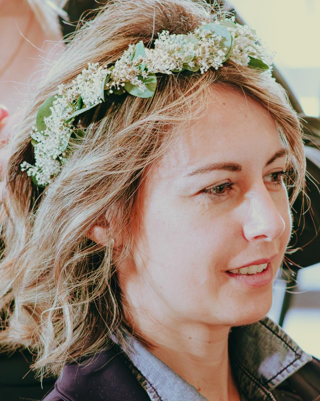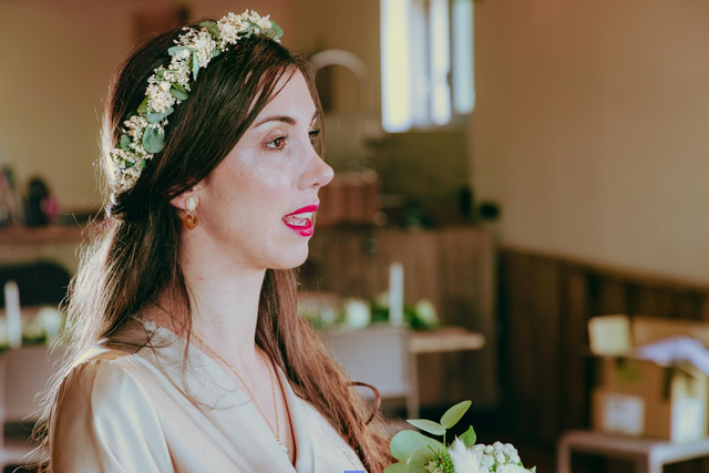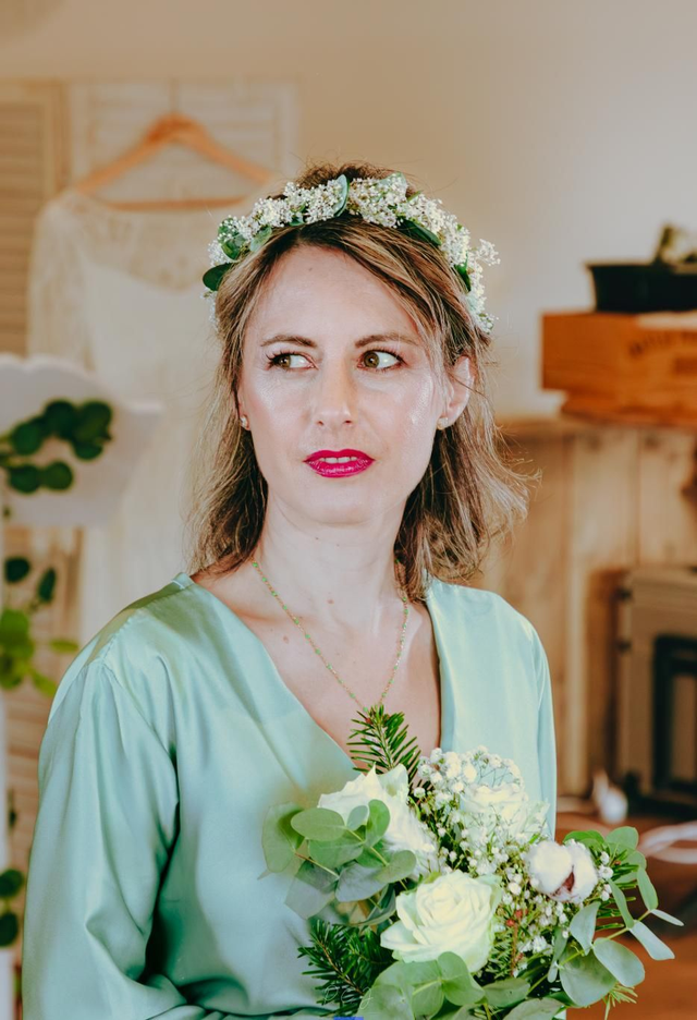 Couronne adulte ou enfant en minigypsophile séché et eucalyptus stabilisé. Idéal pour un mariage ou une cérémonie.